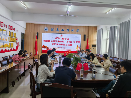 2024年10月16日中午,信息工程学院在工B315召开党委理论学习中心组(扩大)会议暨党纪学习教育总结会,学院领导班子成员、科级干部、党支部书记参加学习会,会议由学院党委书记余晓永主持。
