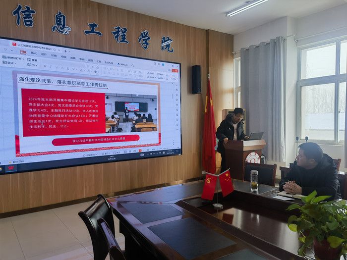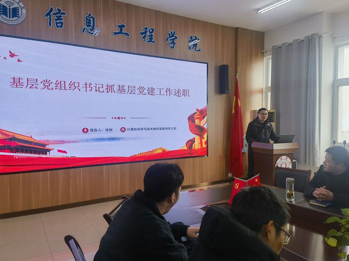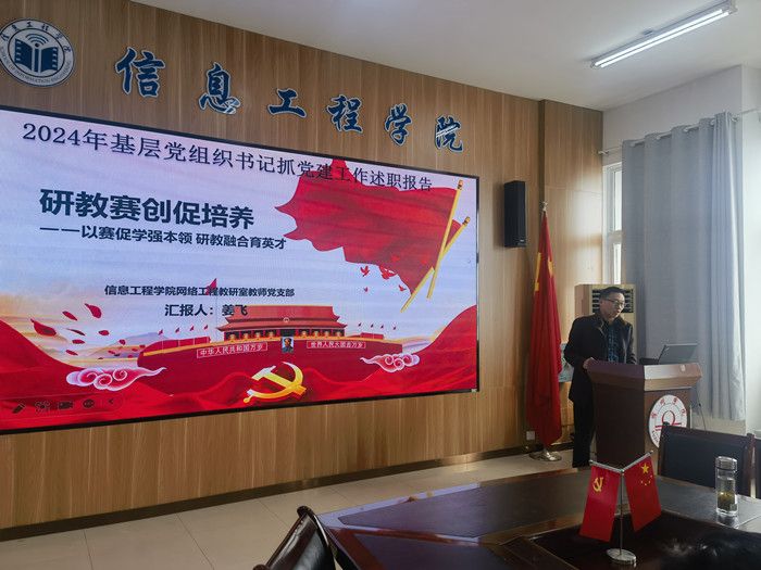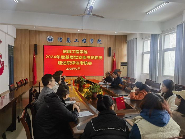 为深入学习贯彻习近平新时代中国特色社会主义思想,全面落实党的二十届三中全会精神以及习近平总书记关于党的建设的重要思想,进一步强化基层党组织建设,推动党建工作责任落实落细,2025年3月12日下午,信息工程学院在工B315召开2024年度基层党组织书记抓基层党建工作述职评议考核会,会议由信息工程学院党委书记余晓永主持,学院党委委员、各党支部书记、科级干部参加此次会议。