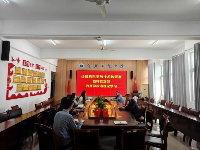 2025年4月16日,计算机科学与技术教研室教师党支部在工科楼B315会议室召开了四月份政治理论学习会议,党支部全体党员参会,会议由党支部书记徐旭主持。