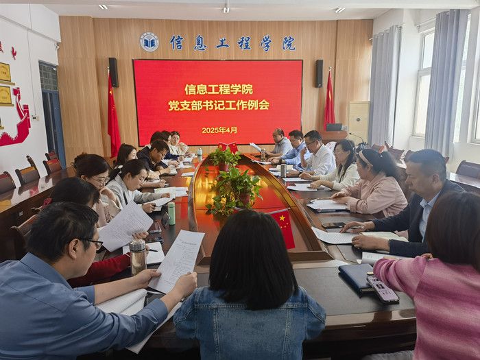 2025年4月16日,信息工程学院在工B315会议室召开支部书记会议。会议由信息工程学院党委书记余晓永主持,学院领导班子成员、各支部书记参会。