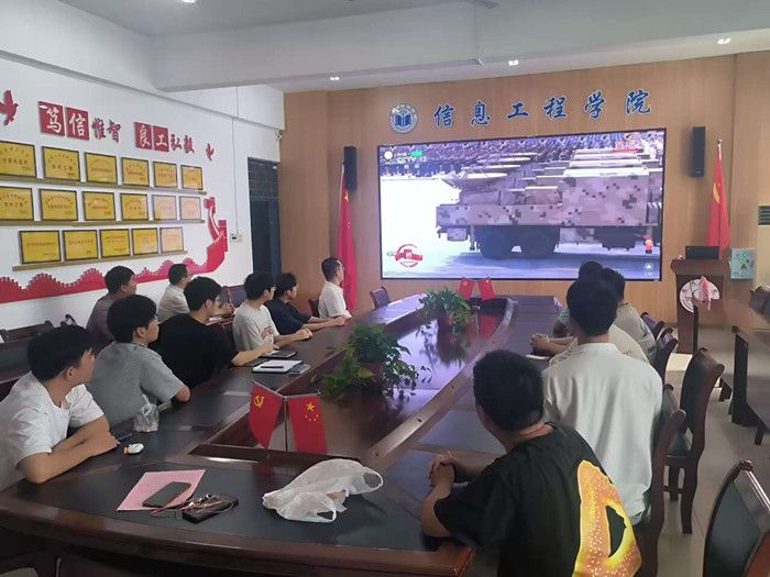 2025年9 月3 日,信息工程学院组织集中收看纪念中国人民抗日战争暨世界反法西斯战争胜利80周年阅兵活动,学院党委副书记、纪委书记吴孝银和学生代表参加。