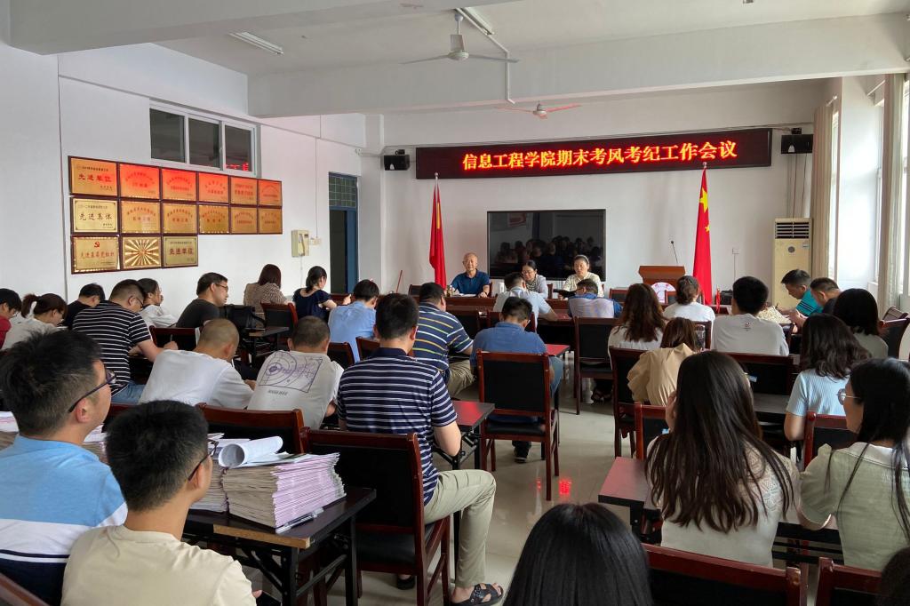 为加强考试的管理,严肃考场纪律,端正考风和学风,确保考试这一环节顺利进行。2021年6月23日下午,信息工程学院在工B315会议室召开期末考风考纪工作会议,会议由信息工程学院院长宋启祥主持,全体教职工参加。