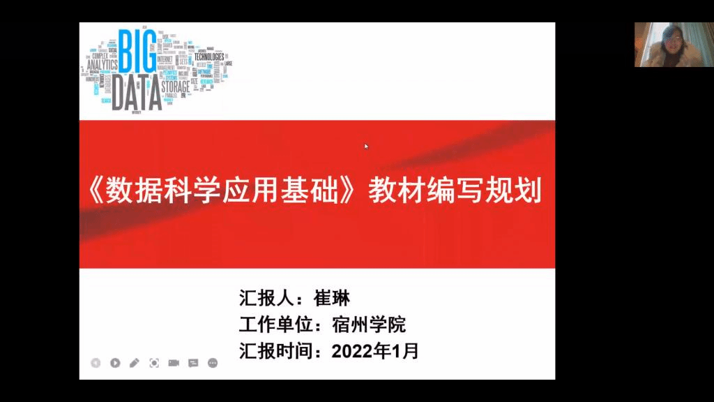 研讨会主要分为三个环节,首先是胡学钢教授致辞,胡教授从新工科人才培养目标、教材编写的意义、教材内容的“形神”、课堂思政融入教材的方法等多个方面进行阐述;随后,安徽师范大学陈付龙教授、宿州学院崔琳教授、淮北师范大学葛方振教授以及巢湖学院吴其林教授分别作教材编写思路与经验分享报告,崔琳教授所作报告的主题是《数据科学应用基础教材编写思路与经验分享》。四位专家教授针对教材的编写理念、编写思路与体系结构等方面,提出了许多具有指导性、启发性的意见和建议。最后,中国铁道出版社有限公司出版中心汪敏编辑对教材编写规范及要求进行了详细的说明。