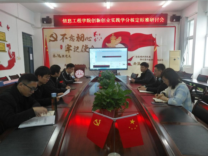 为深入推进学校创新创业改革教育,加强学生创新创业意识和实践能力培养,不断提高应用型高水平人才培养质量,鼓励学生参加科技创新、学科技能竞赛、文学艺术创作及各类创新创业实践活动。根据《宿州学院大学生创新创业实践活动学分认定管理办法(修订)》(校教字[2022]4号)等文件精神,为进一步细化、落实大学生创新创业实践学分认定工作,2022年4月7日在工B315,信息工程学院召开大学生创新创业实践学分核定标准研讨会,院长许海峰,副院长潘正高、崔琳,教学秘书徐旭,教研室主任姜飞、张志伟及相关教学人员参加会议。会议由院长许海峰主持。