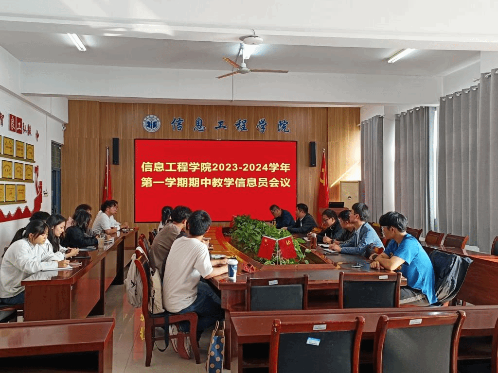 为进一步强化教学管理,不断提高学院教育教学质量,深入了解教学课堂情况,充分发挥学生在教学管理活动中的积极性,按照学校相关文件精神及工作计划安排,信息工程学院于10月23日中午在工B315召开2023-2024学年第一学期期中教学信息员会议。会议由教学副院长潘正高主持,学院教学督导组成员、教研室主任等相关老师及全体教学信息员参加会议。