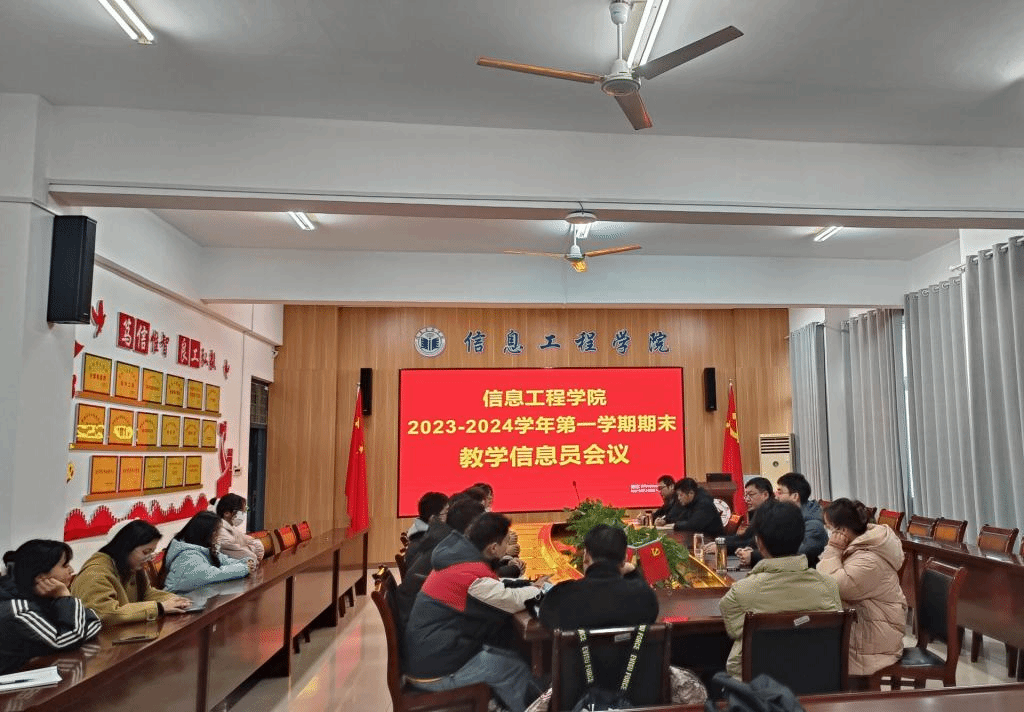 为进一步强化教学管理,不断提高学院教育教学质量,深入了解教学课堂情况,充分发挥学生在教学管理活动中的积极性,按照学校相关文件精神及工作计划安排,信息工程学院于12月11日中午在工B315召开2023-2024学年第一学期期末教学信息员会议。学院院长许海峰、教学副院长潘正高、学院教学督导组成员、教研室主任等相关老师及全体教学信息员参加会议,会议由潘正高副院长主持。