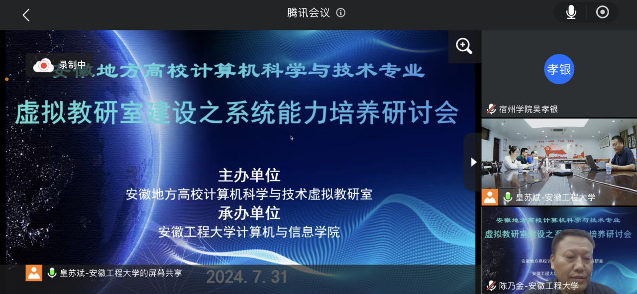 7月31日下午1:30,信息工程学院计算机科学与技术教研室组织全体教师参加安徽地方高校计算机科学与技术虚拟教研室建设之系统能力培养研讨会。本次会议线上举行,由安徽工程大学计算机与信息学院承办,以“系统能力培养”为主题,依托虚拟教研室平台,聚焦于本科生系统能力培养课程体系建设,加强校际合作,以培养学生系统能力为目标,通过新增、重组或改造传统课程,使学生能够深入地理解计算机系统,具备解决软硬件协同设计和复杂工程问题的能力。