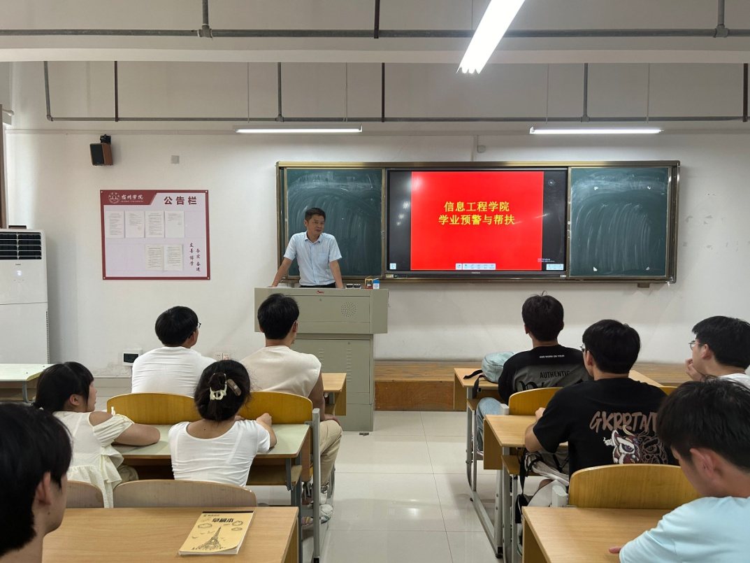 为加强学风建设,严格学业过程管理,9月5日,信息工程学院在实训楼A213召开了信息工程学院学业预警与帮扶工作会议。学院教学副院长潘正高、教学秘书徐旭以及学院全体学业预警学生参加会议。