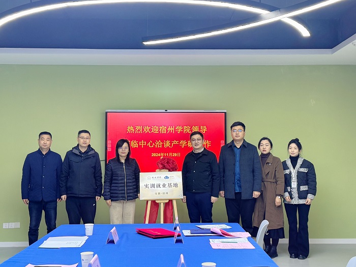 2024年11月29日,宿州学院信息工程学院一行到访宿州市人工智能教育示范中心,共同探讨构建长期稳定的校企合作平台,促进双方在实习(实训)、就业以及“产、学、研”、人才培养等方面的广泛交流与合作,形成“资源共享、合作发展、互利共赢”的紧密互动合作局面,双方正式签署校企合作共建实习(实训)就业基地协议。