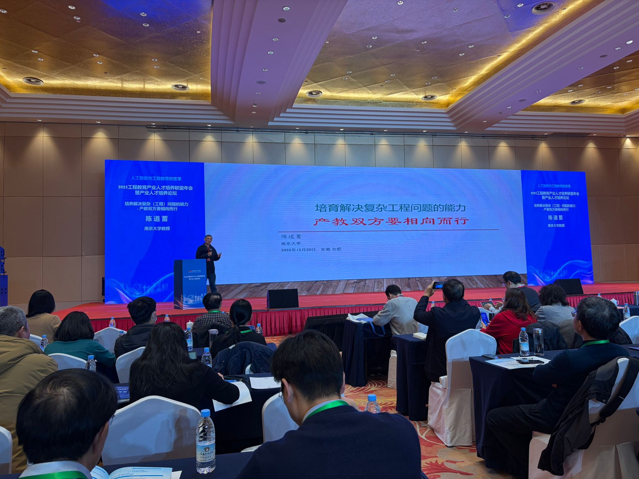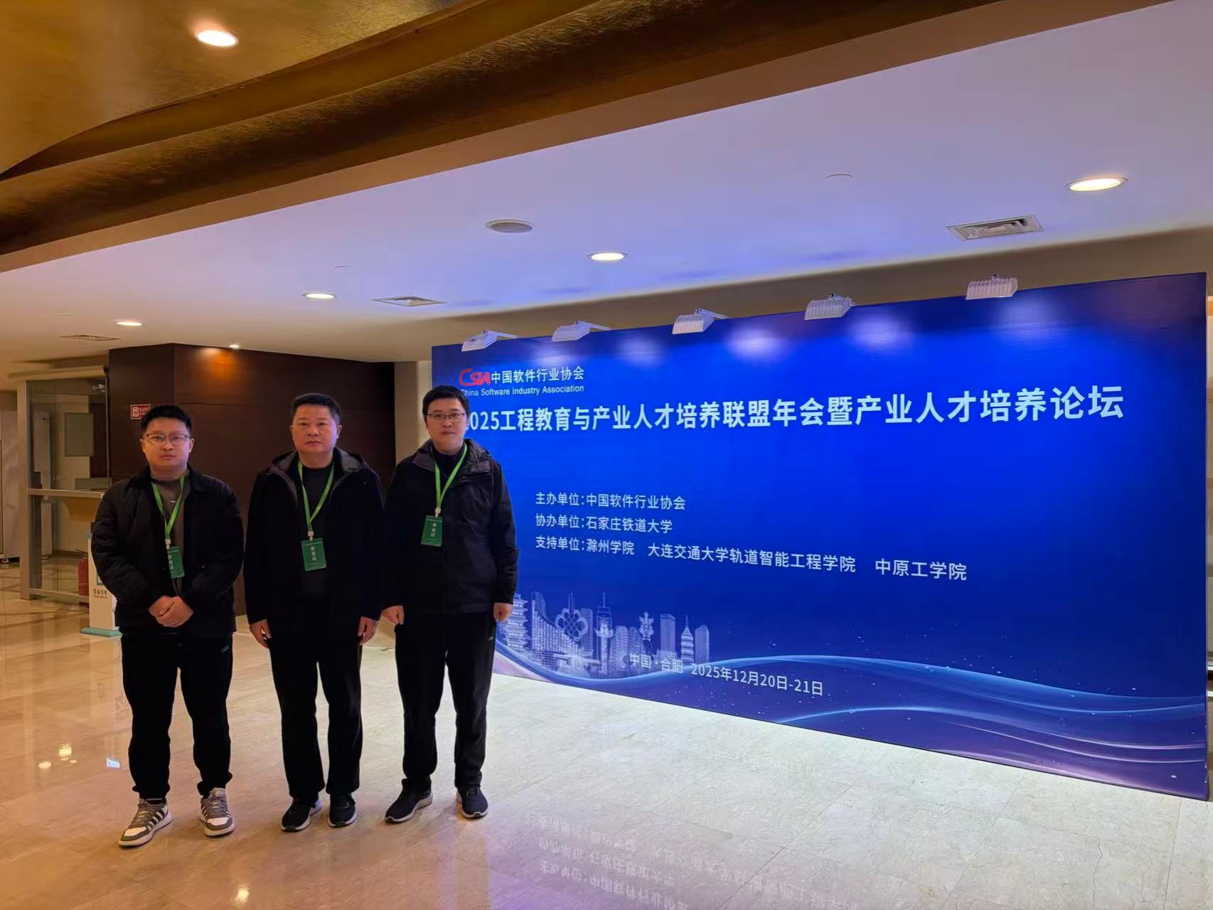 2025年12月20日至21日,2025工程教育与产业人才培养联盟年会暨产业人才培养论坛在合肥天鹅湖大酒店成功举办,信息工程教学副院长潘正高、计算机科学与技术教研室主任徐旭、软件工程教研室副主任秦闻博参加了会议。