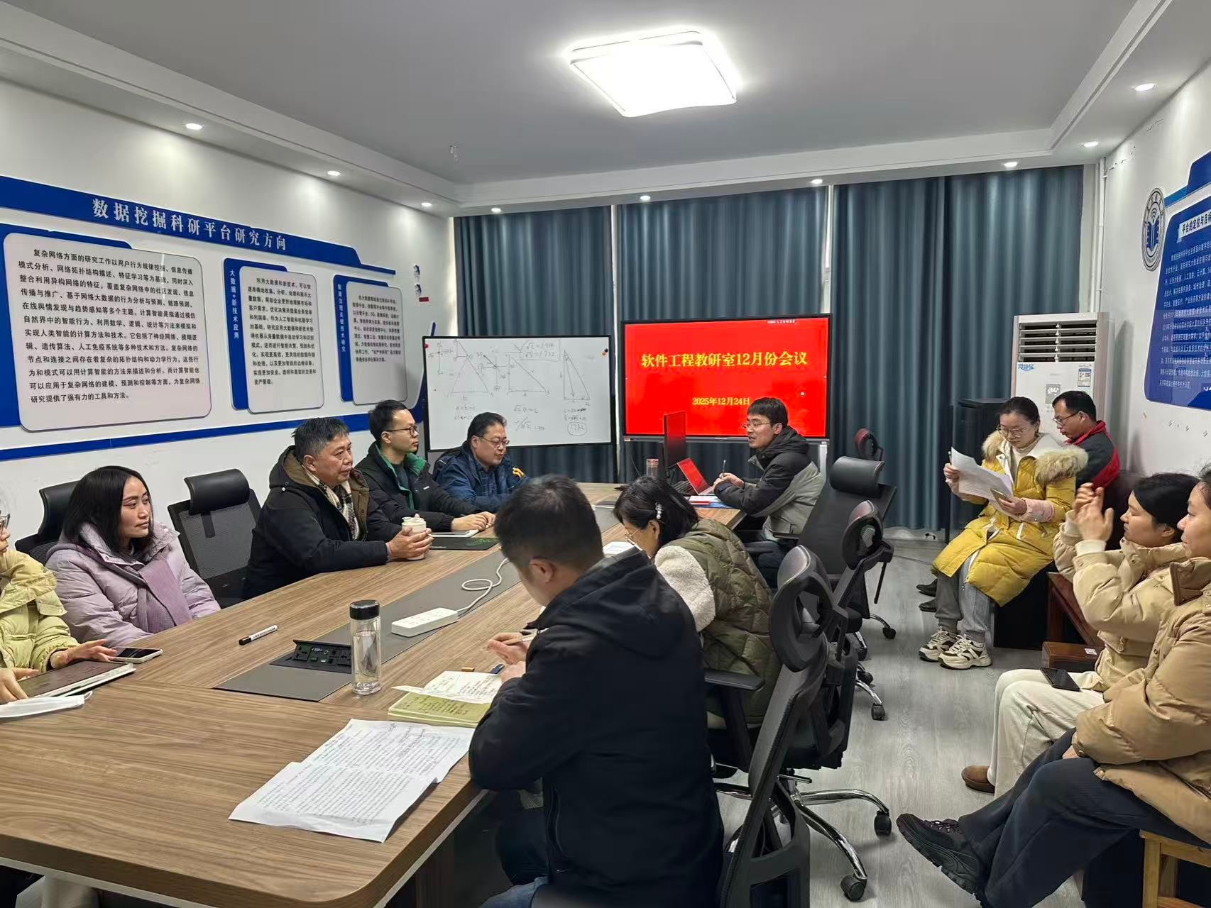 为深入贯彻工程教育认证理念,扎实推进期末教学工作规范化建设,12月24日下午,软件工程教研室在工B105召开十二月份教学工作会议。教研室全体教师参加会议,会议由教研室主任张志伟主持。