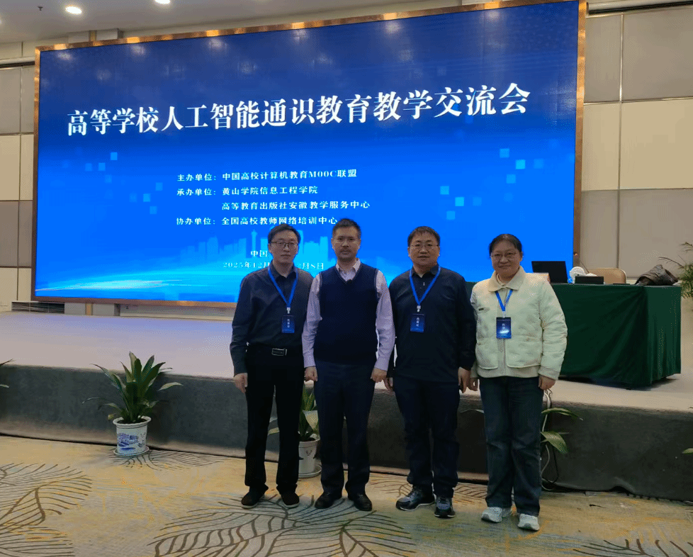 为深入贯彻国家教育数字化战略部署,促进人工智能技术在教育领域的深度融合与应用,2025年12月5日至7日,中国高校计算机教育MOOC联盟在安徽省黄山市屯溪区举办了“高等学校人工智能通识教育教学交流会”。会议由黄山学院信息工程学院与高等教育出版社安徽省教学服务中心联合承办,全国高校教师网络培训中心协办,吸引了来自全国近百所高校的教师代表参与。学院选派姜飞、朱广良、袁春霞三位承担《人工智能应用导引》课程教学任务的教师参加了本次会议。
