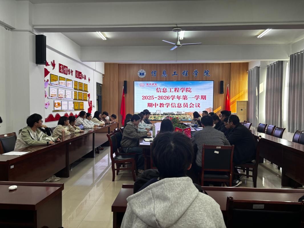 为加强课堂教学管理,促进教学质量提升,充分发挥教学信息员在学风建设和教学信息收集与反馈中的积极作用,信息工程学院于11月13日在工B315召开了2025-2026学年第一学期期中教学信息员会议。党委副书记、院长崔琳,教学副院长潘正高,院教学督导组组长徐旭、组员张晓梅、周玮,教学秘书高亚兰,教研室主任姜飞、秦闻博、沈书豪,教务员刘新新以及各班级教学信息员参会,会议由潘正高主持。