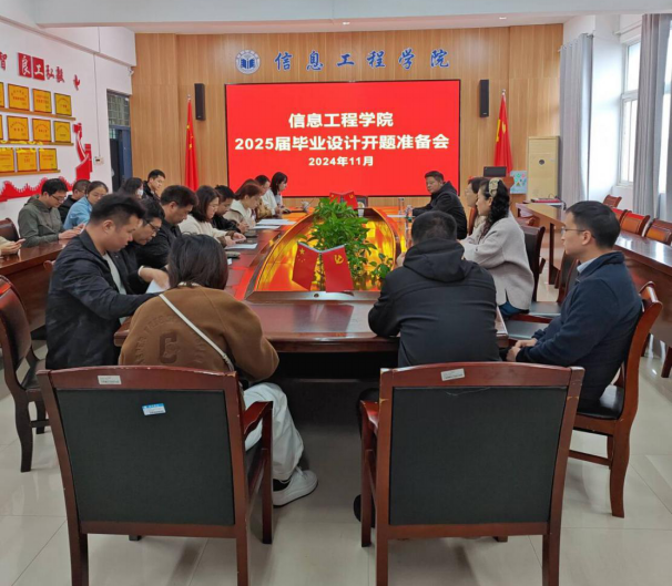 2024年11月17日,信息工程学院在工B315会议室召开2025届毕业设计开题准备会,启动2025届毕业设计开题工作。信息工程学院党委副书记、院长崔琳,纪委书记吴孝银,2025届毕业设计指导教师参加了开题准备会。会议由副院长潘正高主持。
