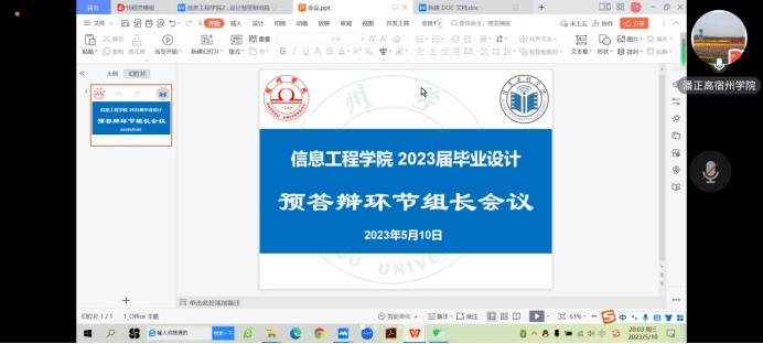 5月10日,信息工程学院线上召开了信息工程学院2023届毕业设计预答辩组长会,会议由教学副院长潘正高老师主持,学院答辩小组组长参加此次会议。