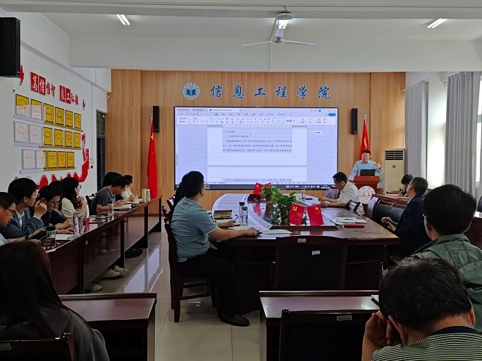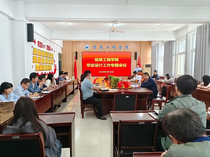 为进一步规范毕业论文(设计)管理流程,强化质量意识,确保2025届毕业生论文工作高质量完成,信息工程学院于2025年4月30日下午14:40在工B315会议室召开了2025届毕业论文(设计)专题工作会议,全体毕业论文指导老师参加会议。会议由信息工程学院教学副院长潘正高主持。