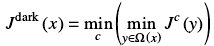 Jdark(x)是以x像素点为中点的像素区域块的暗原色,He等人规定15×15像素来划分图像的区域块,Jc代表J的一个颜色通道,其中c∈{R,G,B},Ω(x)是以x为中心的一块方形区域,经过大量实验观察,在每个方形区域总存在灰度值很低的{R,G,B}通道,抽取出这些块的灰度值,可以得到该图的暗原色图。