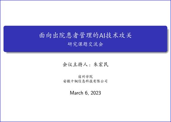 为深化校企合作,发挥校企双方资源优势。2023年3月6日下午,信息工程学院大数据挖掘与治理实验室与安徽十锎信息科技有限公司联合召开“面向出院患者管理的AI技术攻关”研究课题交流会,信息工程学院科研副院长崔琳,学院师生参加本次交流会,会议由安徽十锎信息科技有限公司总经理朱宏民主持。
