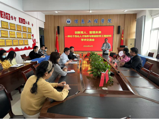 2024年4月17日下午,为推动个性化人才培养及智能软件工程研究的深入发展,宿州学院信息工程学院联合宿州市计算机学会,在工B315会议室共同举办“创新育人,智领未来—深化个性化人才培养与智能软件工程研究”学术交流会,并邀请安徽工程大学计算机与信息学院的刘涛教授和王勇教授作主题报告,分享他们在相关领域的最新研究成果和实践经验。信息工程学院党委书记余晓永、党委副书记、院长许海峰、党委副书记、纪委书记吴孝银、科研副院长崔琳、教学副院长潘正高、宿州市计算机学会秘书长姜飞及学院教师和宿州市计算机学会会员参加了会议。会议由信息工程学院党委书记余晓永主持。