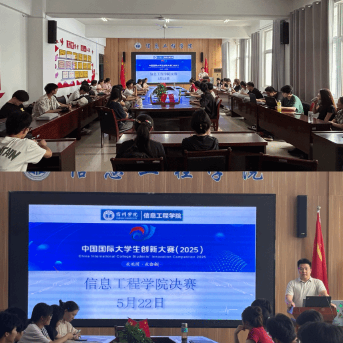 2025年5月22日下午,信息工程学院举办中国国际大学生创新大赛(2025)院赛决赛答辩。本次决赛共有32支队伍入围,分别在工B315和工B101两个分会场进行。评委老师团队由姜飞、徐旭、张志伟、田文泉、沈书豪、秦闻博等各位骨干教师担任,信息工程学院党委副书记、院长崔琳,副院长张万礼参加并指导。