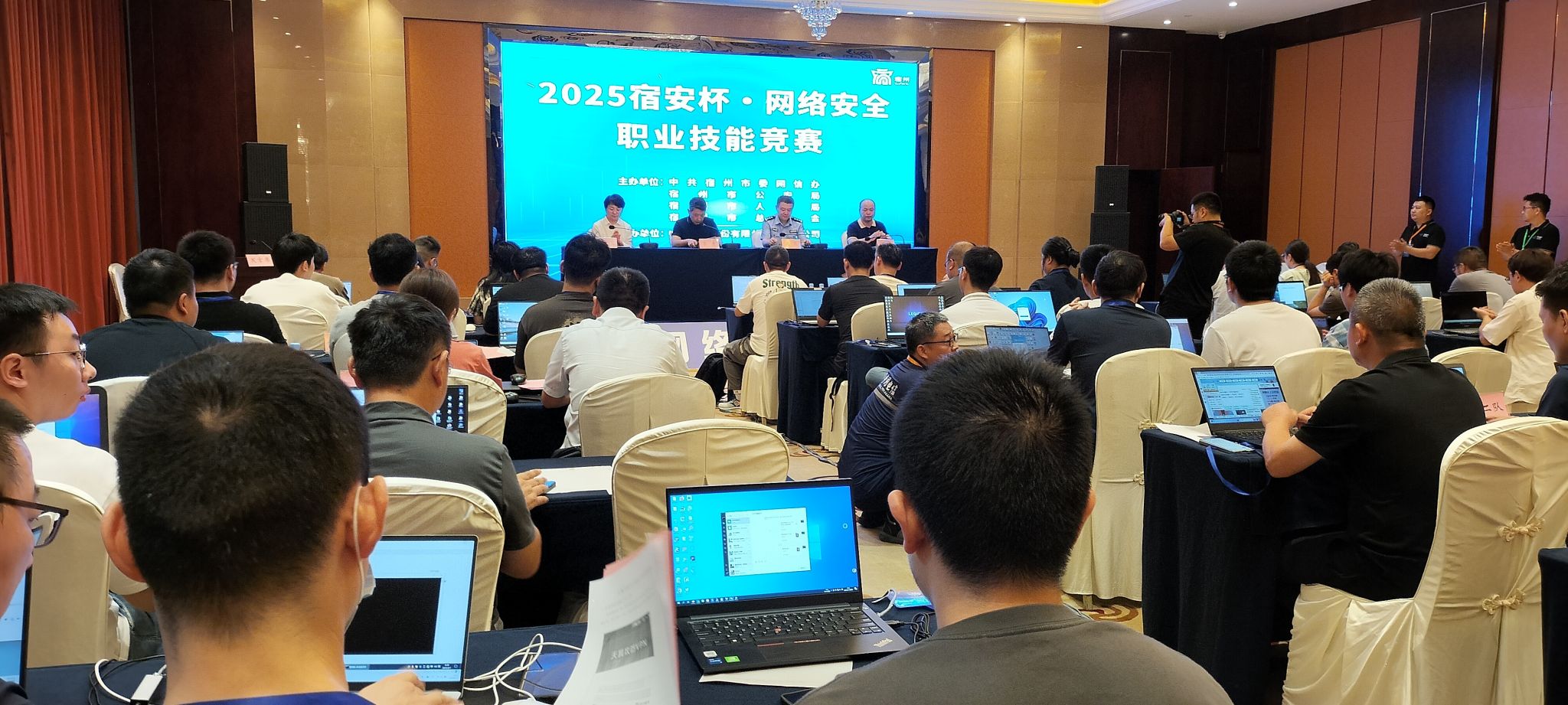 8 月 7 日,由宿州市委网信办、市公安局、市人社局、市总工会联合主办的 2025 “宿安杯” 网络安全职业技能竞赛决赛成功举办。在这场高手云集的赛事中,由姜飞担任领队,与韩光雷、张博文两位同学组成的宿州学院代表队凭借过硬的技术实力和默契的团队协作,从全市 20 支队伍、60 名选手中脱颖而出,摘得竞赛第一名桂冠