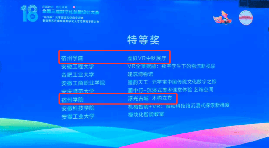 9月20日,2025年第18届全国三维数字化创新设计大赛“曼恒杯”元宇宙虚拟仿真专项赛省级总决赛正式落下帷幕。作为全国普通高校大学生竞赛排行榜赛事的重要晋级环节,本届省级赛事吸引全省多支队伍同台竞技,竞争尤为激烈。宿州学院信息工程学院派出的四支参赛队伍凭借扎实的技术功底、前瞻的设计理念与从容的现场答辩表现崭露头角,最终两支团队成功突围,斩获省级特等奖,不仅实现学院在该专项赛省级奖项的量级突破,更创下参赛以来的历史最佳成绩。