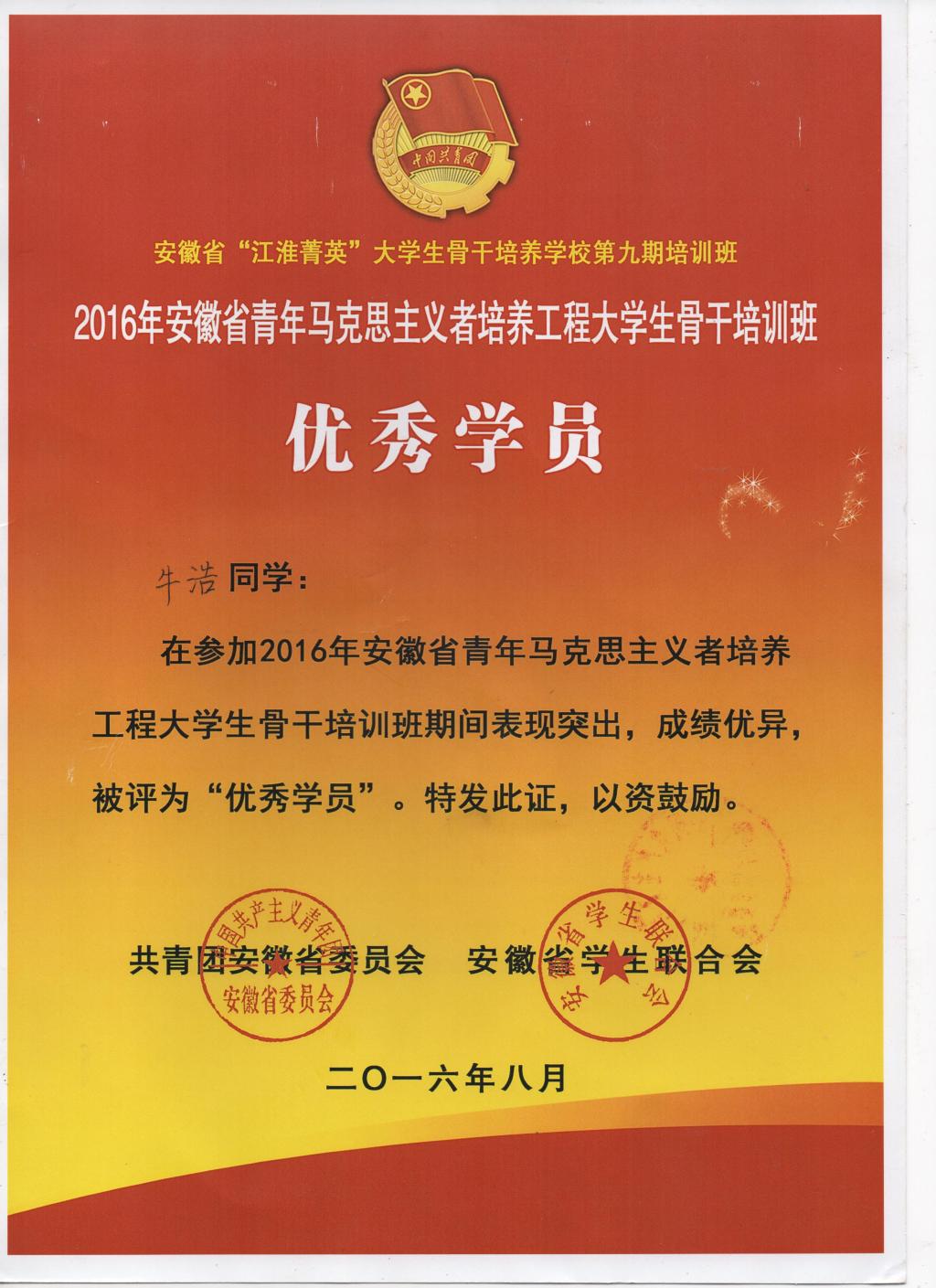 牛浩,男,中共党员,宿州学院信息工程学院物联网工程专业2018届毕业生。曾任班级团支部书记、校团委学生委员主任、共青团宿州学院第一届委员会委员。
