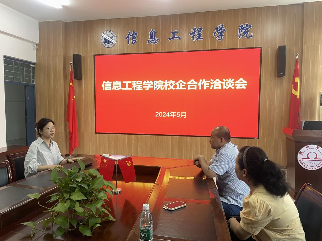 余晓永对信息工程学院的基本情况、专业设置和毕业生生源信息进行了详细介绍。随后,校企双方就如何进一步加强校企对话交流、提升学生就业质量及就业能力等方面进行交流探讨。校企合作既能发挥学校和企业的各自优势,又能共同培养社会与市场需求的人才,是实现校企合作双赢的模式之一。本次校企合作是深度产教融合,增强双方的发展动力和技术创新能力,实现“资源共享、互惠共赢、优势互补、共同发展”的深度体现。