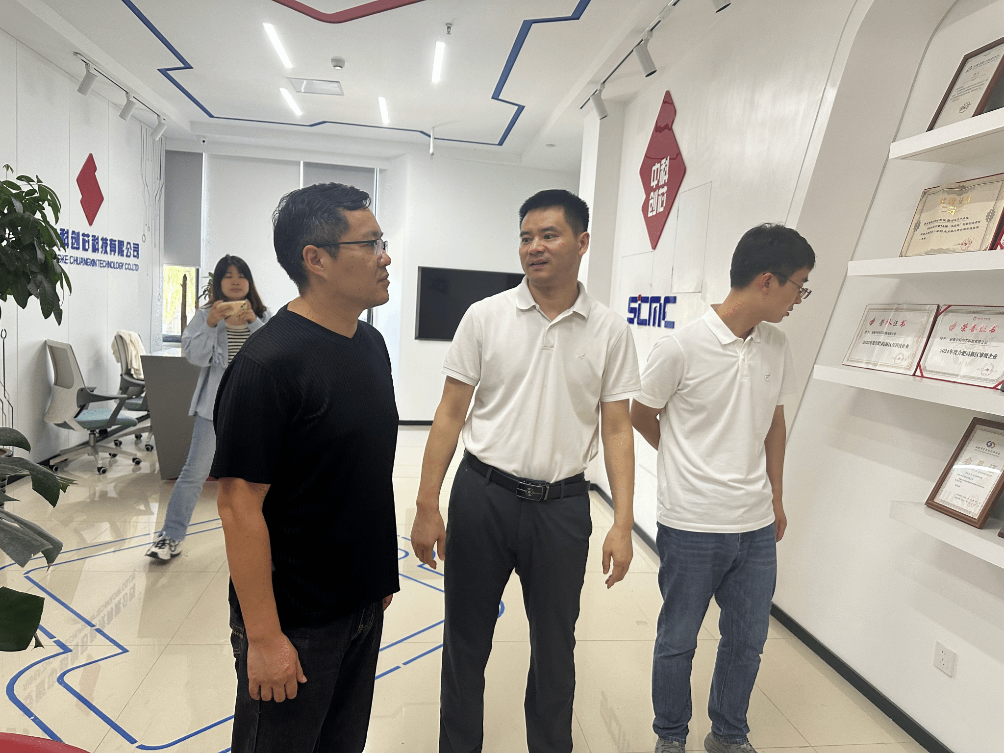 走访期间,学院团队与安徽一脉科技、中科创芯等企业负责人及技术骨干进行了座谈。双方围绕当前行业技术发展趋势、人才需求结构以及校企协同创新可能性展开了务实讨论。余晓永介绍了学院在学科建设、科学研究及人才培养方面的优势,希望与企业共同构建可持续的合作机制,在项目共研、课程共建、学生共培等方面实现更深层次联动。