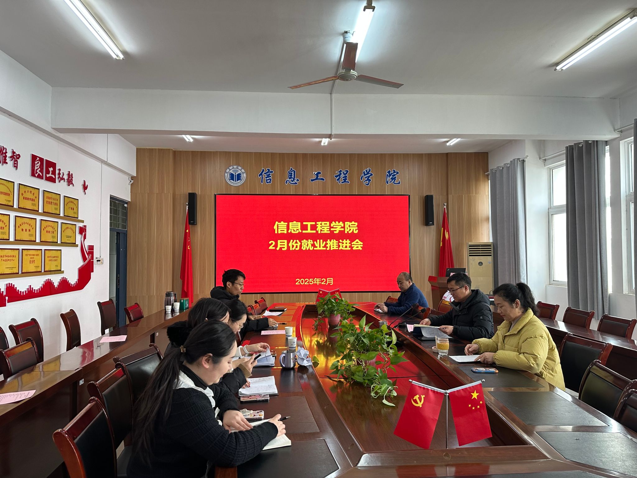 2025年2月21日,信息工程学院组织召开2月份就业工作推进会。会议由学院党委书记余晓永主持,学院领导班子成员、、毕业班辅导员参加会议。会议旨在深入分析当前就业形势,总结前期工作进展,并部署下一阶段毕业生就业推进任务,全力保障2025届毕业生更充分、更高质量就业。