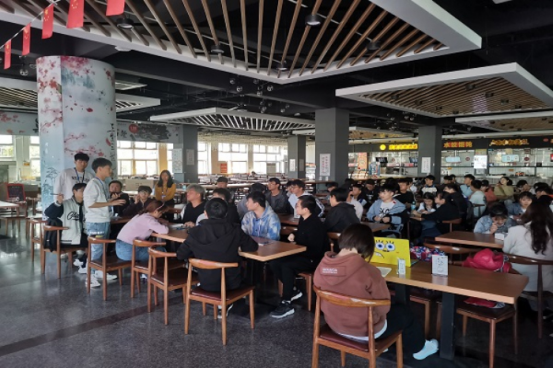 比赛开始前,志愿者们安排参赛选手进行签到及就坐,参赛小组以签到顺序作为参赛次序,寂静的食堂也因同学们的积极参与开始热闹起来。主持人简单的讲明规则后,比赛也随之开始。一共十七组选手,每组三人,一位同学进行线上抢答,另外两位同学则需要观看大屏幕的题目,来进行解答。现场同学们有条不紊的进行比赛,体现了同学们默契的团队精神。此次活动的题目内容也十分丰富,不仅有中国近代史的红星内容,也有关于安全方面的基本常识等。参赛同学们都是自信满满地回答出正确答案,不得不让人惊叹其知识的广泛。经过四轮精彩的角逐,最终产生了冠亚季军。主持人上台致辞后,此次比赛圆满结束。