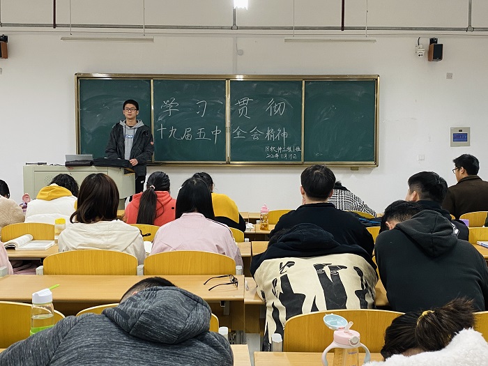10月29日,中国共产党第十九届中央委员会第五次全体会议顺利闭幕。这次全会站在“两个一百年”的历史交汇处,擘画发展蓝图、规划实践路径、作出战略部署,为了让同学们更加深刻的了解五中全会精神,信息工程学院18级软件工程1班特于11月19日于实训楼A107举办了“学习党的十九届五中全会精神”主题团日活动。