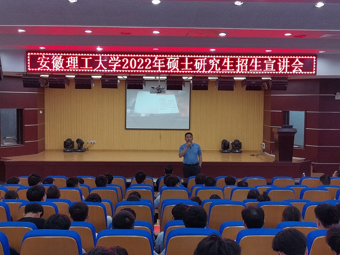 宣讲会上,刘惠临主任先播放了安徽理工大学的宣传片,让学生对安徽理工大学有整体的认知。然后从学院简介、人才培养、科研管理、创新创业、学科竞赛等五个方面讲解计算机科学与工程学院的建设与发展情况,重点说明了研究生招生情况、政策、奖助学金、研究方向等。