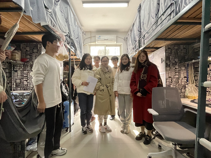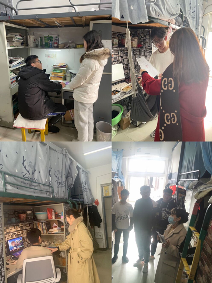 在学期末宿舍走访活动过程中,各辅导员深入了解宿舍生活情况,仔细查看了学生宿舍生活设施、宿舍环境、用电安全等多方面的情况,强调学生应严格遵守学校的住宿规定,注意自身安全,树立防患于未然的意识。在此期间辅导员也结合现阶段学校的要求,重点强调了疫情期间非必要不出市的原则,落实疫情防控工作,坚决打赢这场疫情攻防战。与此同时,辅导员们就学生们的心理状态和临近期末的学习状态等问题进行了面对面亲切交流,详细询问了各宿舍成员间关系是否融洽,生活习惯是否良好,日常生活是否有困难。除此之外,辅导员还建议同学们合理安排复习时间,做好充足准备,做到从容考试,诚信考试。