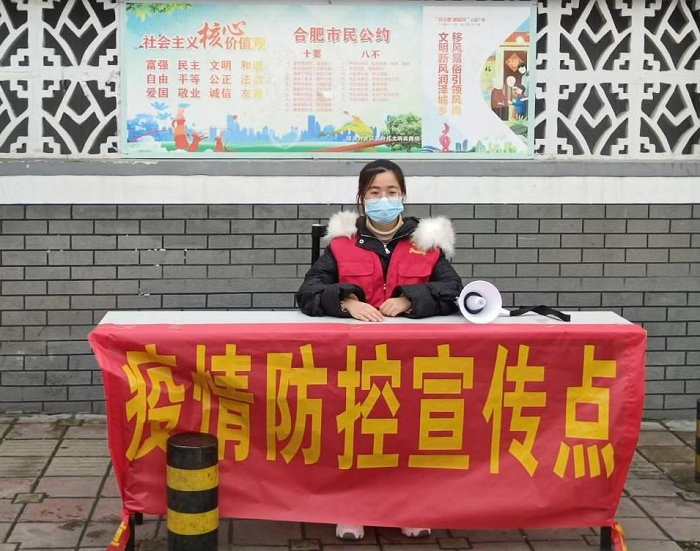 2022年2月16日至2月18日,21计算机7班,胡洪同学在合肥七里站春华社区参加了疫情防控志愿者服务。她负责帮助中高风险返乡人员进行隔离,及时提醒可以接种第三针加强针的居民,让他们顺利完成接种。疫情当前,从挨家挨户走访、分发防疫宣传单页、询问登记外地人员信息,到不厌其烦地为年长的居民解读细节,引导居民不信谣、不传谣,再到认真负责协助卡口工作人员做好体温测量、信息登记等工作,用行动诠释了共青团员的责任和担当。