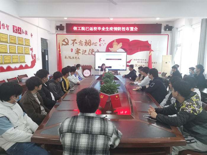 4月6日,18计科1、18大数据1、18软工3、18物联网班于工b315召开已返校毕业生疫情防控主题班会,会议由辅导员吴雨桐主持。