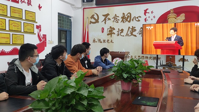 2022年5月10日上午,庆祝中国共产主义青年团成立100周年大会在北京人民大会堂隆重举行,中共中央总书记、国家主席、中央军委主席习近平出席大会并发表重要讲话。信息工程学院分团委组织部分青年团员在工B315会议室,集中观看庆祝大会实况直播。
