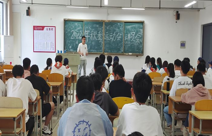 为迎接第十六届校运动会,让各位同学了解运动会相关事宜,信息工程学院于2022年9月26日中午1点半在实训楼A113举办了2022年秋季运动会动员会。本次活动由信息工程学院分团委负责人周莹老师主持,信息工程学院各年级班长、团支书及体育委员参加了本次动员会。