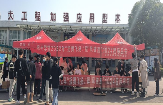 为了庆祝1024程序员节的到来,培养同学们对计算机的兴趣,提升同学们的计算机水平能力。信息工程学院于2022年10月23日上午8点至下午5点在一食堂门口举办1024程序员节开幕式活动。参加本次活动的有宿州学院在校大学生。