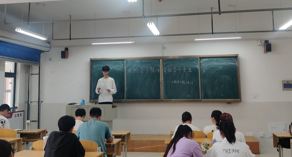 活动中,由班委带领各位同学对党的二十大报告指出的“广大青年要立志做有理想、敢担当、能吃苦、肯奋斗的新时代好青年”。进行学习。学习后由各个同学演讲对奋斗的理解或搜集的奋斗故事。