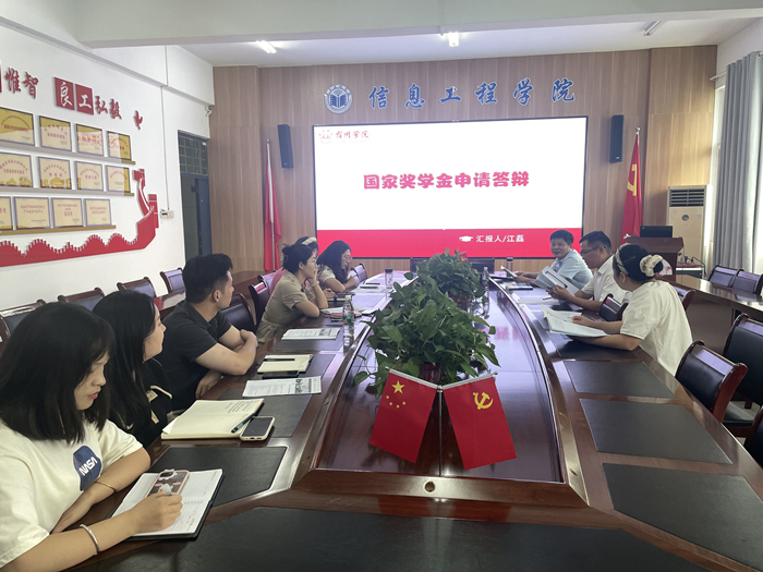 会上,余晓永首先对国家奖学金评审工作的重要意义进行了强调,就评审依据、办法、要求以及程序进行了说明。接着,推荐参加评选的江磊等3名同学从个人基本信息、社会实践、创新能力、综合素质、获奖情况等方面进行了自我介绍及个人展示。随后,与会人员依据评审规定,严格审核了各候选人的道德风尚、学术研究、学科竞赛、创新发明、社会实践、社会工作、体育竞赛、文艺比赛及综合素质测评成绩等方面的材料。经信息工程学院党政联席会议研究后,确定拟推荐学生名单。