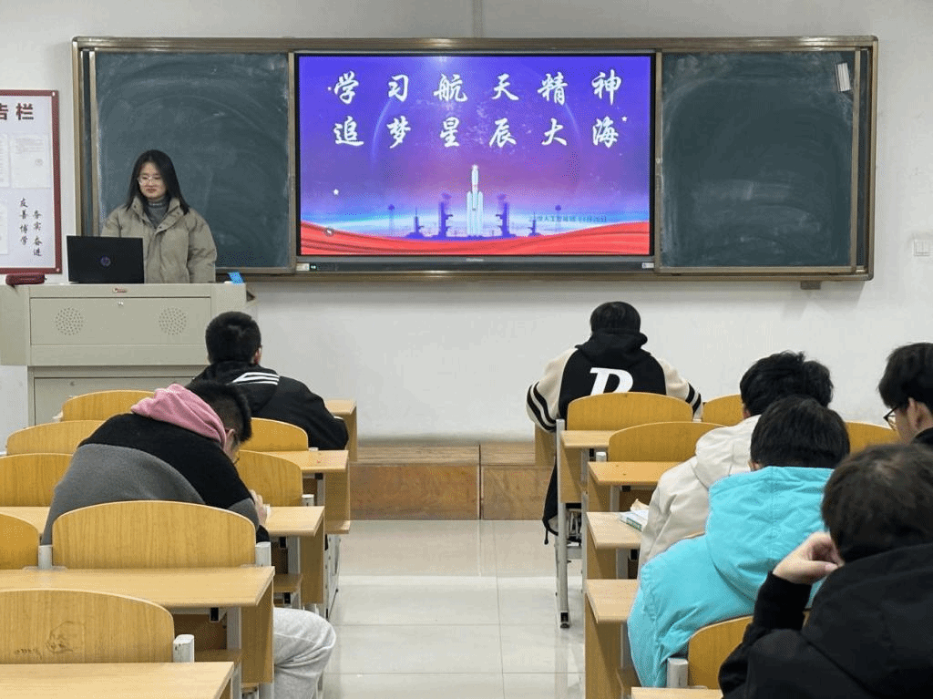2023年10月26日,神舟十七号载人飞船发射取得圆满成功。载人航天事业的成就,充分展示了伟大的中国道路、中国精神、中国力量,坚定了全国各族人民实现中华民族伟大复兴的中国梦的决心和信心。党的十八大以来,习近平总书记一直高度重视我国航天事业的发展,多次发表重要讲话,为建设航天强国指明了方向。为培养大学生们的“爱国奉献、艰苦奋斗、自立自强”为核心的航天精神,信息工程学院23级人工智能班于2023年11月26日晚上在宿州学院实训楼A楼203召开“学习航天精神,追梦星辰大海”主题团日活动。活动由23人工智能组织委员刘蝶主持,23人工智能班全体同学参加。