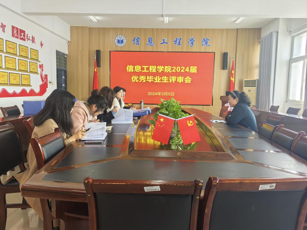 做好我院2024届省级、校级优秀毕业生推荐评审工作,3月7日,信息工程学院在工b315会议室召开了推荐评审会。学院党委副书记、纪委书记吴孝银、全体辅导员参加会议。