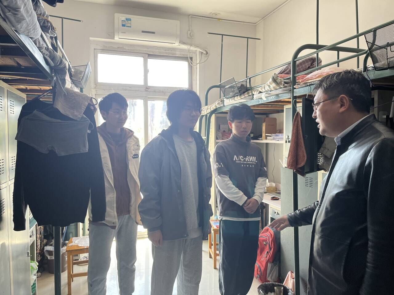 在走访过程中,领导和老师们与学生们进行了亲切地交流,对返校学生的思想状况、假期生活、新学期的学习计划、宿舍安全以及在生活中遇到的问题等方面进行了深入细致的交流。许海峰强调要高度重视宿舍的安全和卫生,还提醒学生们要勤开窗通风,保持宿舍干净整洁,注意用电安全。同时,他们也鼓励同学们相互关心、团结友爱,共同营造一个良好的学习和生活环境来迎接新学期的到来。