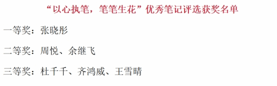 评选过程中,评委们对参赛作品的原创性、逻辑性、美观性以及创新性进行,综合考量,在场负责人设立公平的规则,客观认真负责的对待每一篇投稿。最终选出了优秀作品。获奖作品不仅展现了学生们扎实的知识功底,更体现了他们对学习热爱与思考。它证明了笔记不仅仅是知识的简单记录,更是思维火花碰撞和知识的结晶。