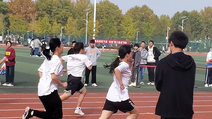 在为期两天的比赛日程中,每一场比赛都让人感到热血沸腾,同学们充分展现了拼搏、进取精神。径赛场上,丁萌萌和段思悦同学参加女子甲组100米,她们如狡兔般飞离起点,似利箭一般冲向终点,引得在场的同学兴奋不已,无论选手是否获得第一,都会赢得同学们的加油和鼓励,男子5000米是考验选手毅力和体力的项目,虽不如短跑那样让人兴奋,但是更能吸引同学们的目光,贺宇详和王敦剑同学博得一阵又一阵“加油”,这加油声包含鼓励与支持,传达着拼搏与争先,闪耀着不服输的精神。