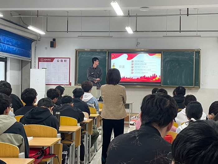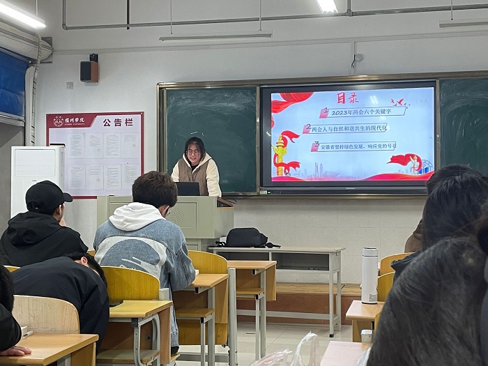 为做好学习贯彻习近平新时代中国特色社会主义思想主题教育,使同学们谨记习近平总书记的重要讲话,承担新时代的中国青以实现中华民族伟大复兴为己任的责任,增强做中国人的志气、骨气、底气,把毛概课堂中的知识与两会的问题融会贯通。21计算机5班于2023年4月26日上午8.00,在毛概课堂上组织本课程实践教学成果评比活动。活动由任课教师杨娟老师组织,21计算机5班全体学生参与。
