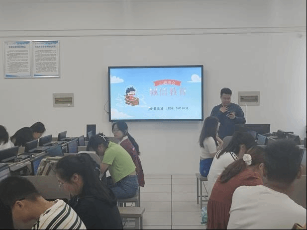 5月12日中午,在辅导员沈书豪老师和团支部的带领下,22计算机2班全体同学在工科楼B506机房开展了以“诚信教育”为主题的团日活动。团会开始由团支书王敏详细讲述了国家资助贷款的内容,标准以及贷款合同中的各项义务,使同学们深刻了解了高校资助。接着同学们观看了有关国家资助法律、金融视频,进一步了解其内涵以及法律效应。最后有几位受到国家资助的同学切身的畅谈了得到国家帮助后生活,学习的改善。并且承诺一定会履行贷款合同的义务,树立诚信的品质。