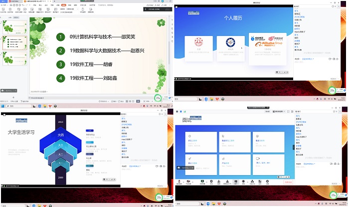 为推进学习贯彻习近平新时代中国特色社会主义思想主题教育走深走实,帮助同学们更好地规划自己的职业发展,21计算机567班于6月12日晚上七点在线上开展了一场计算机类专业职业规划分享会,邀请到多位学长为我们分享他们的经验和心得。