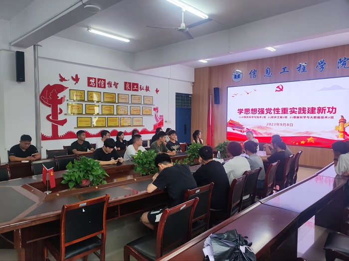 为深入学习习近平新时代中国特色社会主义思想,2023年9月8日下午,辅导员吴孝银带领21计算机科学与技术2班、21数据科学与大数据技术2班、21软件工程2班等三个班级学生干部开展“学思想、强党性、重实践、建新功”教育活动。